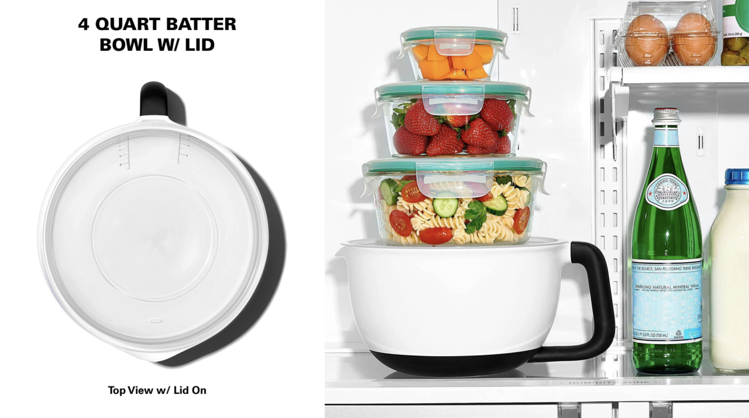 4 QT Batter Bowl design has a closed loop handle for more support when carrying the bowl around.